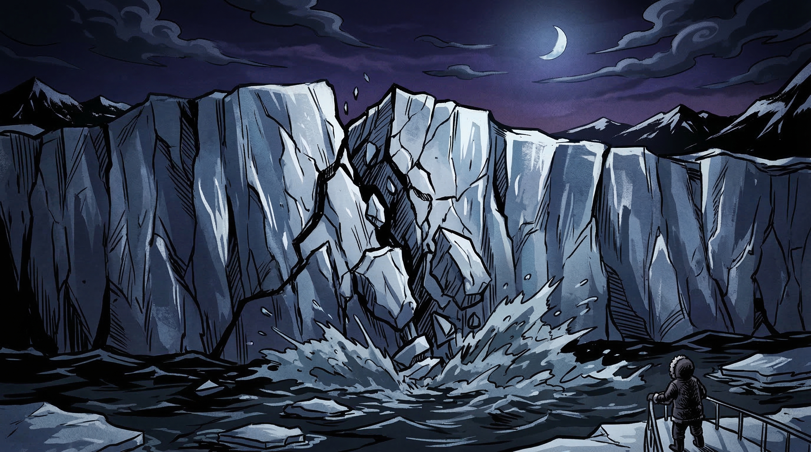 거대한 빙벽이 무너져 내리는 모습